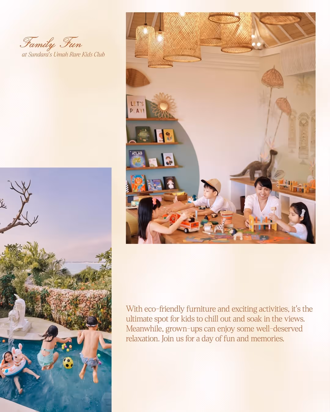 • Umah Rare Kids Club: Take a break by the pool while the kids enjoy supervised fun and activities with qualified staff at the kids club.